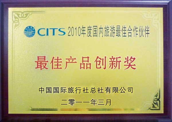 茂名國旅獲國旅總社頒發(fā)的“2010年度最佳產(chǎn)品創(chuàng)新獎”