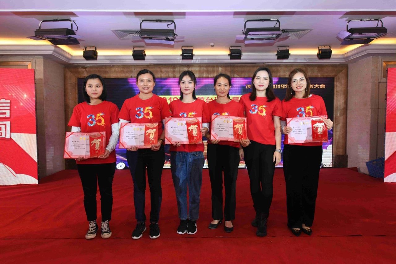 ▲粵西旅游手信城總經理王紫瑤為2019年度“進步最快獎”獲得者:鄭海棠、賴恒珠、吳巧女、鄭小梅、李曉虹頒獎