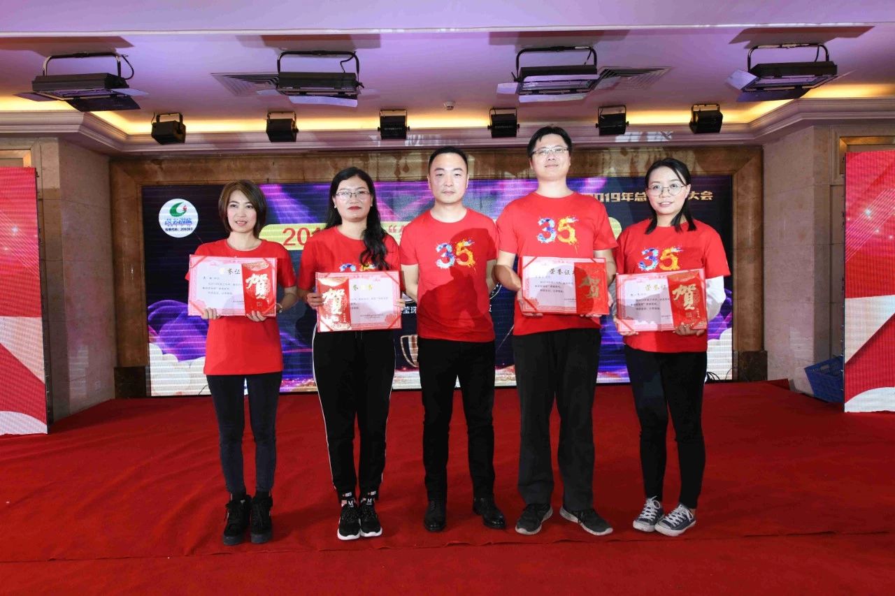 ▲總經理吳卡達為2019年度“翡翠營銷精英獎”獲得者:林曉、祝桂芳、袁翠紅、吳偉琴、劉顏娟頒獎