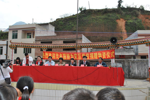 12月13日早上,在茂名國(guó)旅董事長(zhǎng)費(fèi)明龍的帶領(lǐng)下,國(guó)旅領(lǐng)導(dǎo)班子和信宜營(yíng)業(yè)部的員工又來(lái)到信宜錢(qián)排鎮(zhèn),向白馬小學(xué)送來(lái)了120套全新的課桌椅和體育用品一批。在捐贈(zèng)儀式上,國(guó)旅負(fù)責(zé)人對(duì)該校全體師生說(shuō),雖然我們出的只是一點(diǎn)綿薄之力,但國(guó)旅在幫扶災(zāi)區(qū)方面時(shí)時(shí)處處發(fā)揮著表率作用,國(guó)旅帶著愛(ài)心和鼓勵(lì)而來(lái),希望災(zāi)區(qū)的同學(xué)們發(fā)揚(yáng)艱苦奮斗的精神,排除萬(wàn)難,刻苦學(xué)習(xí),以優(yōu)異成績(jī)回報(bào)社會(huì),為家鄉(xiāng)建議多作貢獻(xiàn)。當(dāng)天,信宜市副市長(zhǎng)封小翠、市教育局局長(zhǎng)羅思等領(lǐng)導(dǎo)也出席了捐贈(zèng)儀式并作了講話。