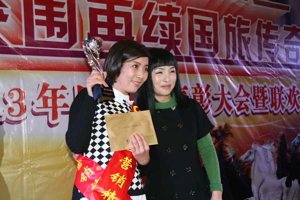 吳卡達總經(jīng)理為年度杰出營銷精英獎獲得者劉麗紅、祝桂芳、黃清波、王素娟、楊玉榮、袁翠紅頒獎。