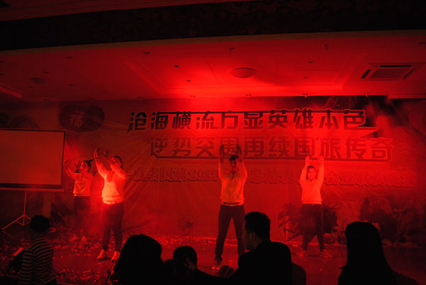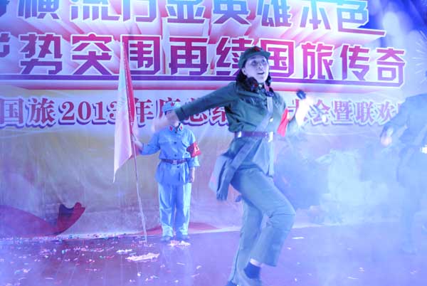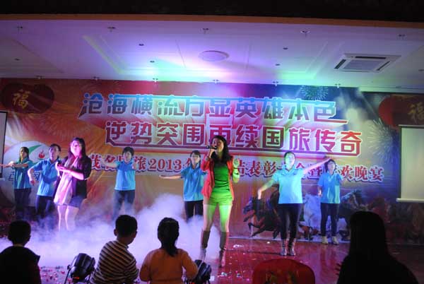 會上,公司對2013年度先進員工進行了隆重表彰,并自編自演了豐富多彩的文藝節(jié)目。晚會節(jié)目精彩紛呈,現(xiàn)場氣氛激情熱烈。鮮明的青春氣息,濃郁的企業(yè)文化,形象地展現(xiàn)著國旅人的風采,充分體現(xiàn)了公司員工青春激昂、銳意進取的精神面貌。晚會結束后,公司全體員工一起共進酒宴,宴會上穿插著豐富多彩的互動游戲以及激動人心的抽獎活動。整個年會在和諧、溫馨的氣氛中圓滿結束。