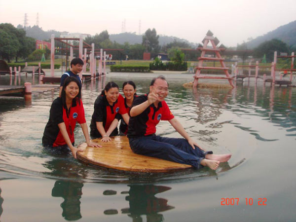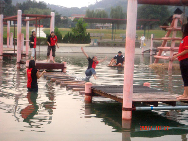 下午,考察團一行來到“笑翻天樂園”進行企業(yè)團隊拓展培訓,培訓的題目是“超越自我,挑戰(zhàn)極限,打造贏的團隊”。整個培訓以獨特的理念將體能訓練、心理訓練、幽默搞笑、活動營銷巧妙地整合在一起,通過對每一個拓展項目的共同參與,鍛煉團隊成員面對危機時應有勇氣、意志與團隊精神。在鍛煉中增強人與人之間的溝通,營造良好的團隊氛圍,打造贏的團隊。培訓分為山谷游樂園、水上樂園A區(qū)、水上樂園B區(qū)、水戰(zhàn)區(qū)四大部分。
