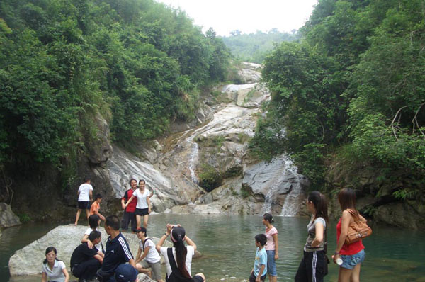 在一個(gè)陽(yáng)光明媚的日子里,化州營(yíng)業(yè)部的全體員工及部分家屬約20人,乘座公司安排的金龍中巴車(chē),高高興興地出發(fā)了。我們的第一個(gè)活動(dòng)是到陽(yáng)西東水鎮(zhèn)爬山,經(jīng)過(guò)約一小時(shí)的車(chē)程我們到達(dá)了登山點(diǎn),開(kāi)始向山上行進(jìn)。小路彎彎曲曲且窄得只能容一個(gè)人通行,隨著地勢(shì)的逐漸陡峭,行走愈發(fā)困難,有些地方單靠個(gè)人的力量已經(jīng)難以通過(guò),此時(shí)我們化州營(yíng)業(yè)部的員工們充分發(fā)揚(yáng)了團(tuán)結(jié)互助的合作精神,大家你幫我、我?guī)湍悖嗷v扶著,越過(guò)了一個(gè)又一個(gè)的坎坷。當(dāng)大家最終翻過(guò)那面巨大的巖石,但見(jiàn)一簾飛瀑潺潺而下,流入我們腳邊那清澈見(jiàn)底的水潭中……面對(duì)如此優(yōu)美的風(fēng)景,大伙頓時(shí)歡呼雀躍起來(lái)。合影留念之后,大家三五成群地坐在石頭上嬉戲,盡情享受著大自然的青山綠水,而我們悅耳的笑聲在山谷中顯得格外地清脆。