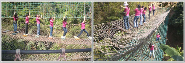 項(xiàng)目目的:平衡比速度更重要。始終保持鐵鏈垂直平衡,參訓(xùn)人員整體前進(jìn),不搞個(gè)人英雄主義。全體隊(duì)員互相照應(yīng),互相支持與協(xié)作才能順利達(dá)到目的地。