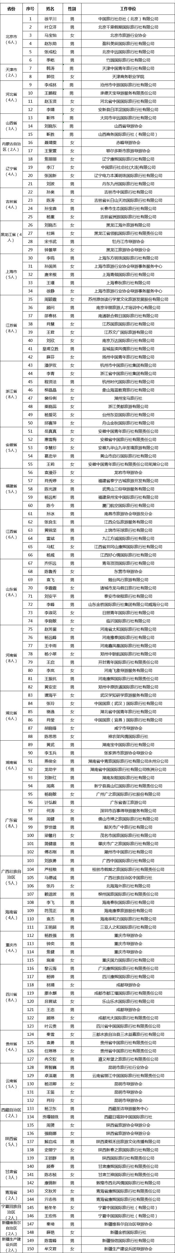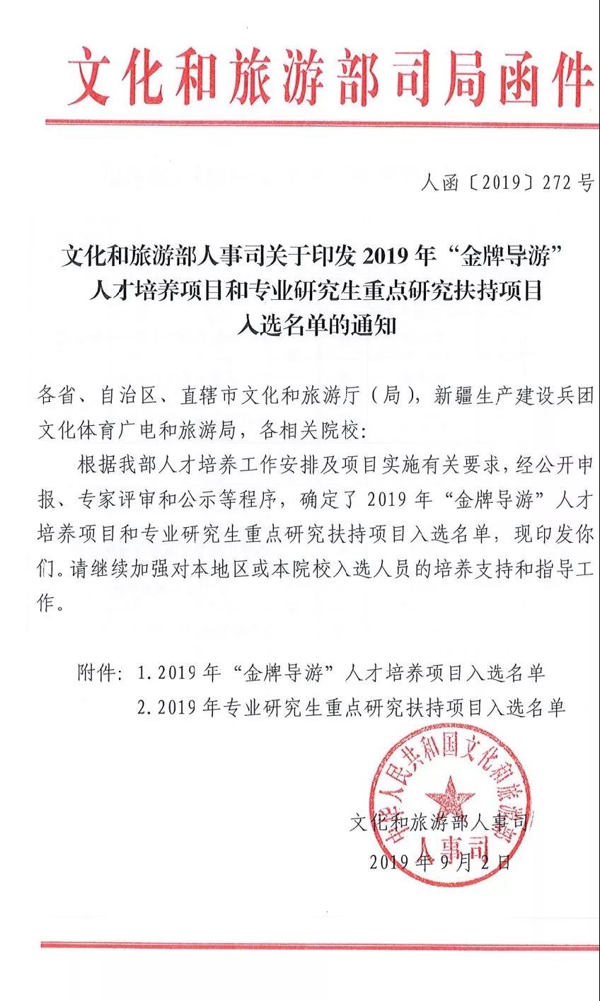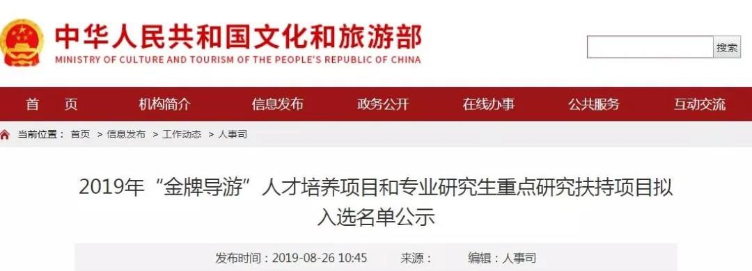 2019年“金牌導(dǎo)游”人才培養(yǎng)項(xiàng)目入選名單