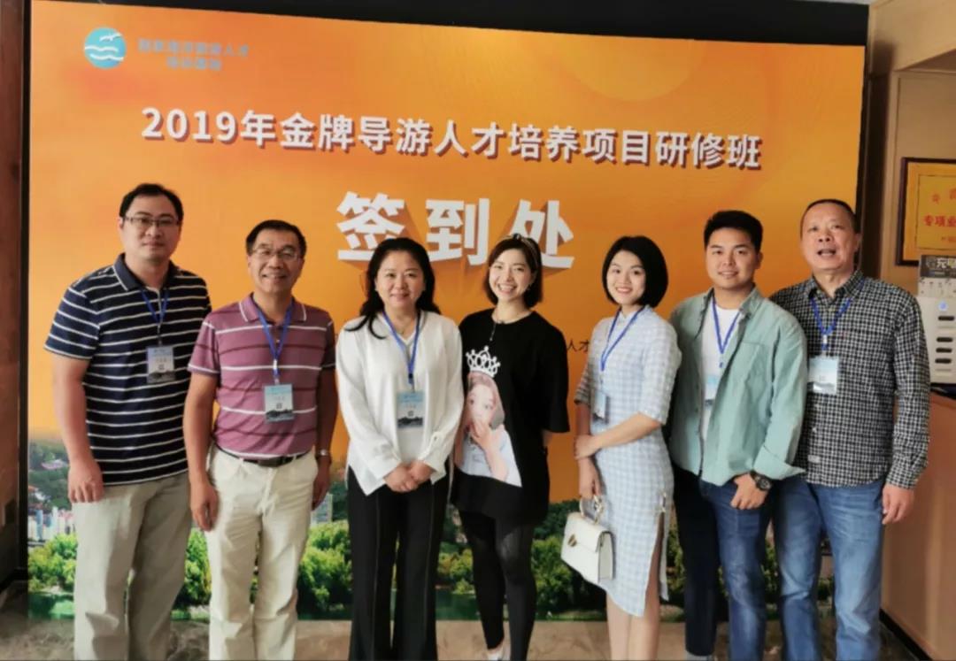 廣東入選金牌導(dǎo)游研修班中的7位成員合影(左五為茂名國旅導(dǎo)游梁馨月)