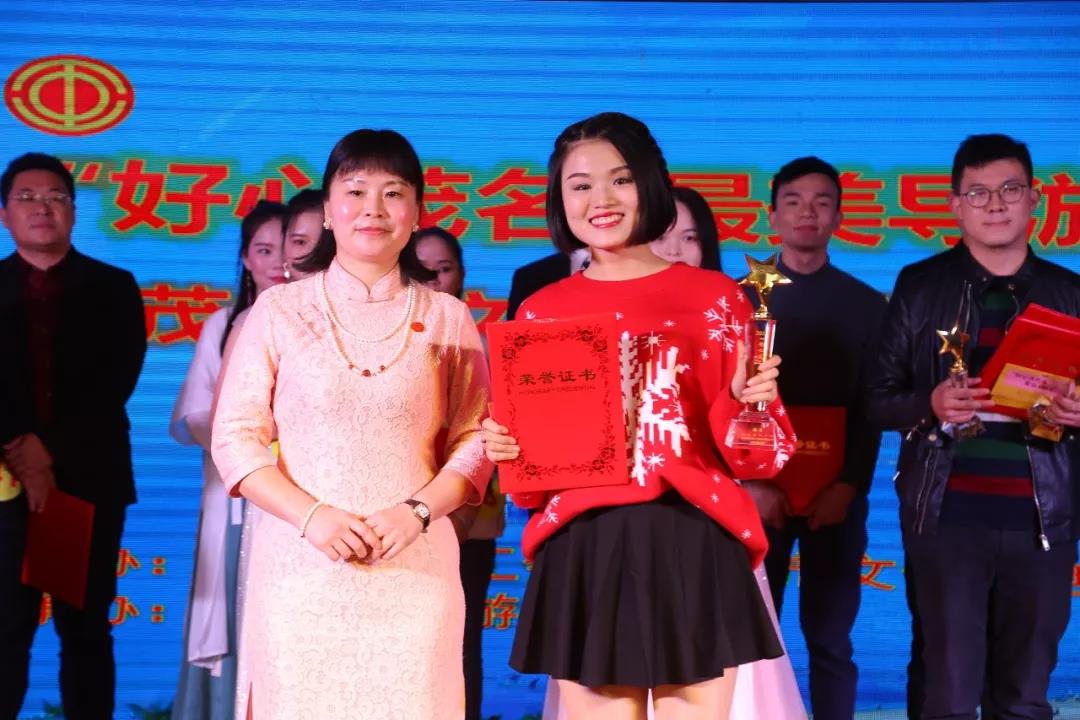 在2018“好心茂名 最美導(dǎo)游”,和茂名市文明導(dǎo)游使者活動(dòng)中, 她一舉奪得比賽冠軍,隨后她又一邊帶團(tuán)一邊認(rèn)真學(xué)習(xí),取得了外語導(dǎo)游證