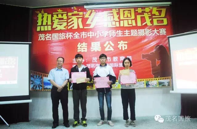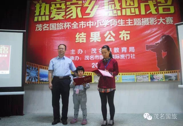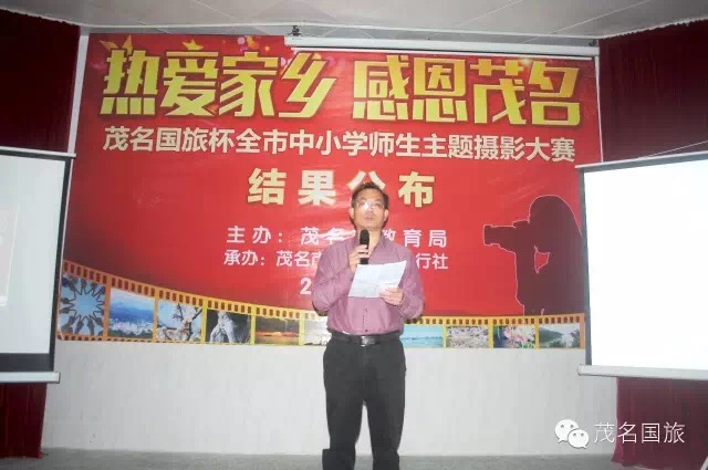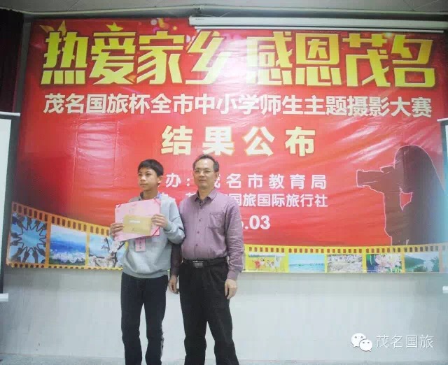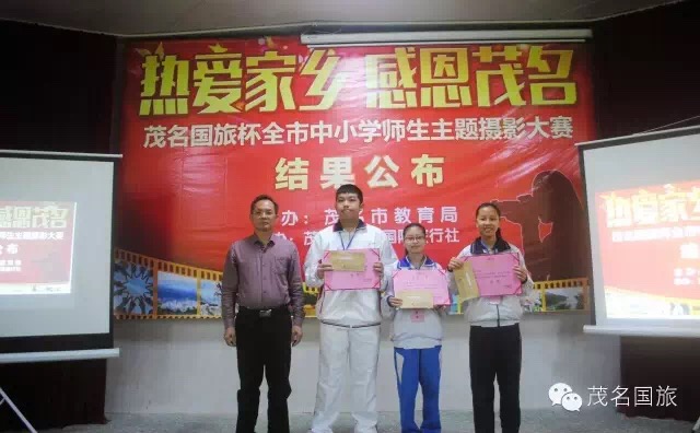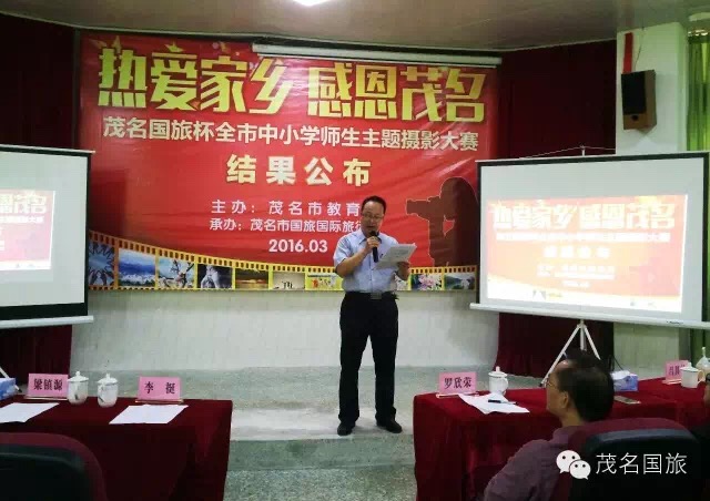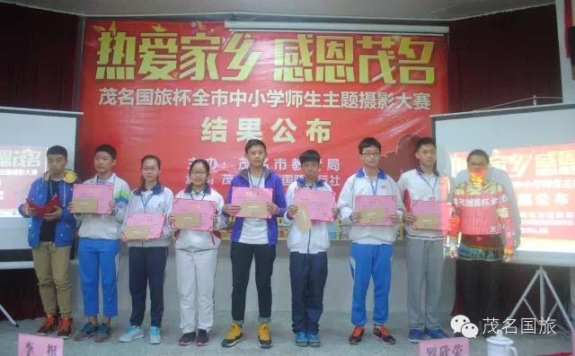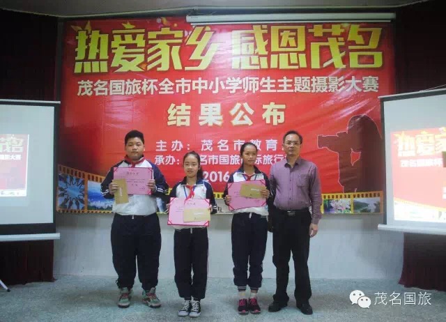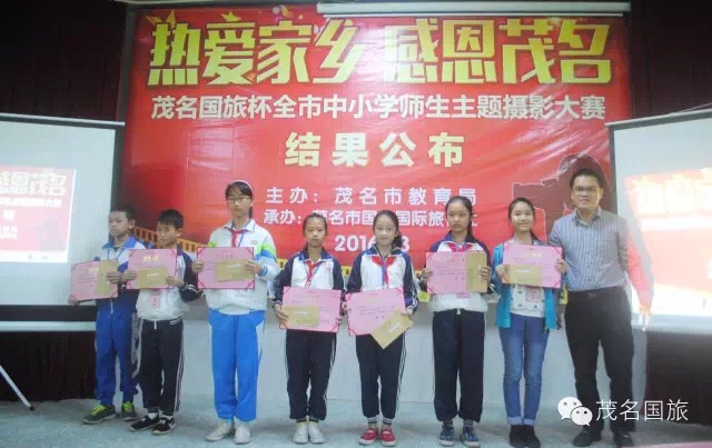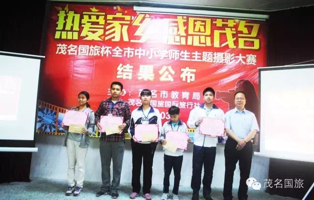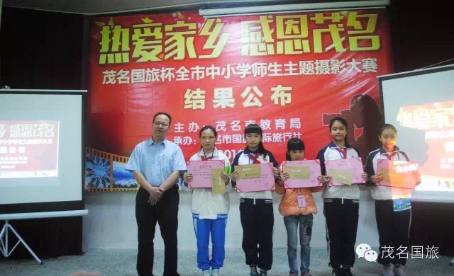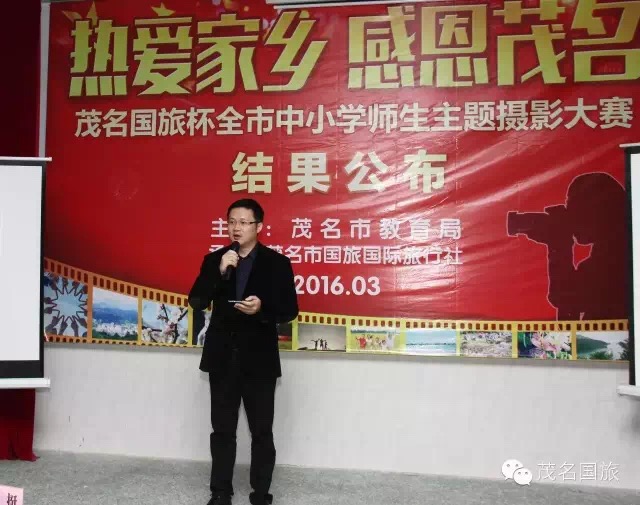 3月19日上午,第二屆“茂名國旅杯”全市中小學生“最美中國”主題攝影大賽和2015年“茂名國旅杯”全市中小學師生“熱愛家鄉(xiāng),感恩茂名”主題攝影大賽結果在茂名市第一中學附屬學校揭曉。茂名市教育局黨委書記、局長羅欣榮和市教育局黨組成員、副局長李挺、市教育局辦公室主任梁鎮(zhèn)源、市教育局德育科科長林偉紅、市教育局德育科副科長呂其仙、茂名國旅總經理吳卡達、茂名市攝影家協會家協會主席彭永強等出席大會。