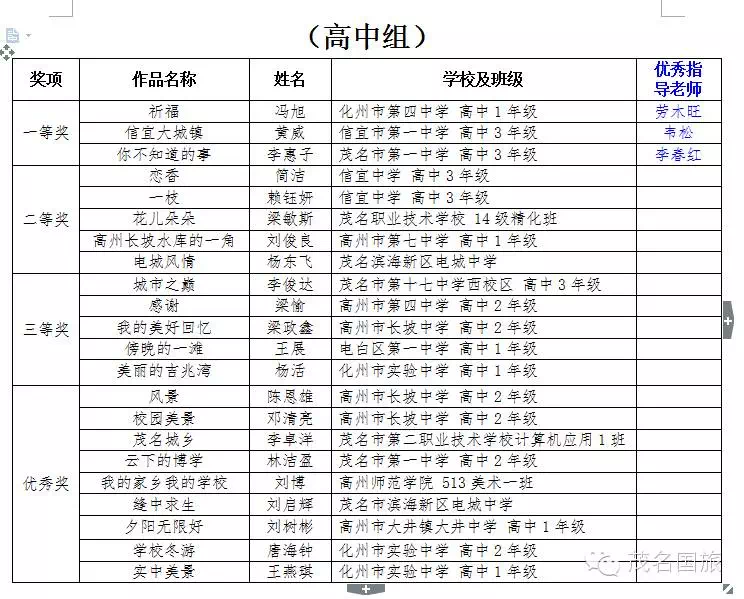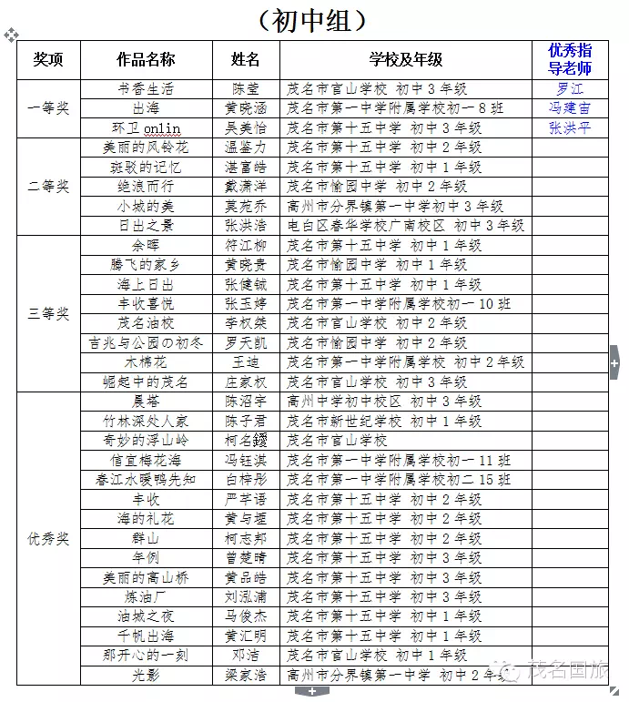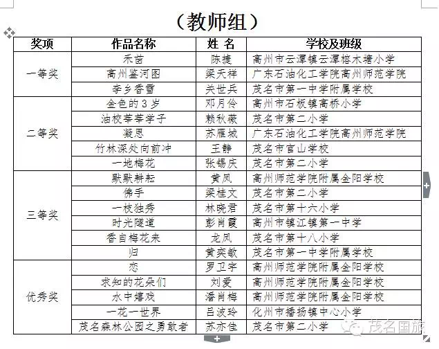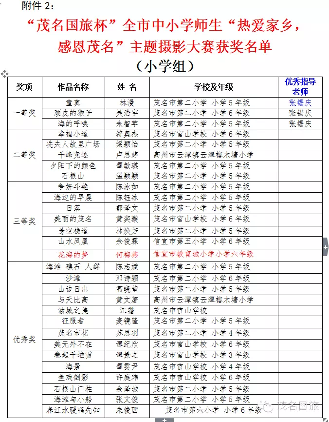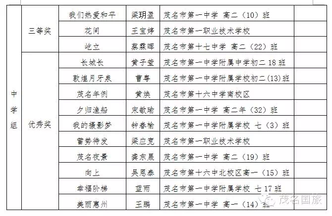 “茂名國旅杯”全市中小學師生主題攝影大賽結果揭曉