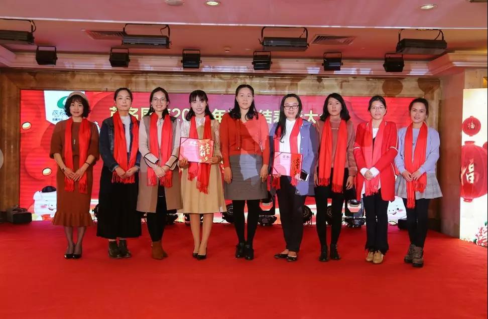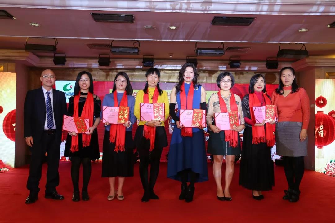 ▲副總經(jīng)理劉穎、總經(jīng)理助理楊柳椿為2018年度“杰出營銷精英”獎獲得者:張彩云、柯慧容、王素娟、潘雪梅、郭紅霞、楊玉榮頒獎。