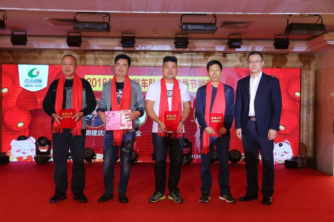 ▲副總經(jīng)理梁湘軍為2018年度旅游車隊“駕駛員節(jié)能獎”獲得者:賴建武、曾慶全、廖寧光、林文生頒獎。