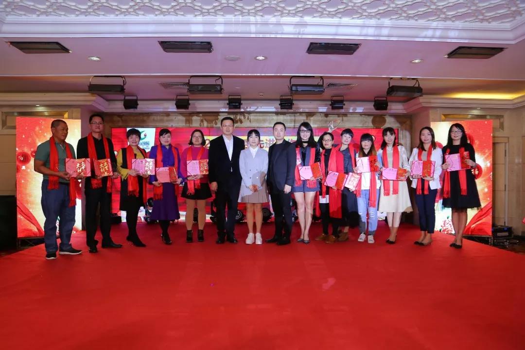 ▲總經(jīng)理吳卡達為2018年度“黃金營銷精英”獎獲得者:梁雪玲、羅華梅頒獎。
