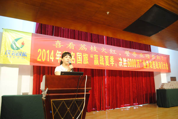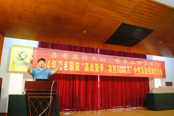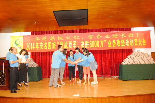 為了扭轉(zhuǎn)公司面臨的嚴(yán)峻經(jīng)營(yíng)形勢(shì),激勵(lì)公司員工銷售工作的積極性,促進(jìn)完成2014年度經(jīng)營(yíng)指標(biāo),2014年5月24日,茂名國(guó)旅隆重舉辦了“贏戰(zhàn)夏季”業(yè)務(wù)攻堅(jiān)戰(zhàn)動(dòng)員大會(huì),全體員工共200多人參加了會(huì)議。