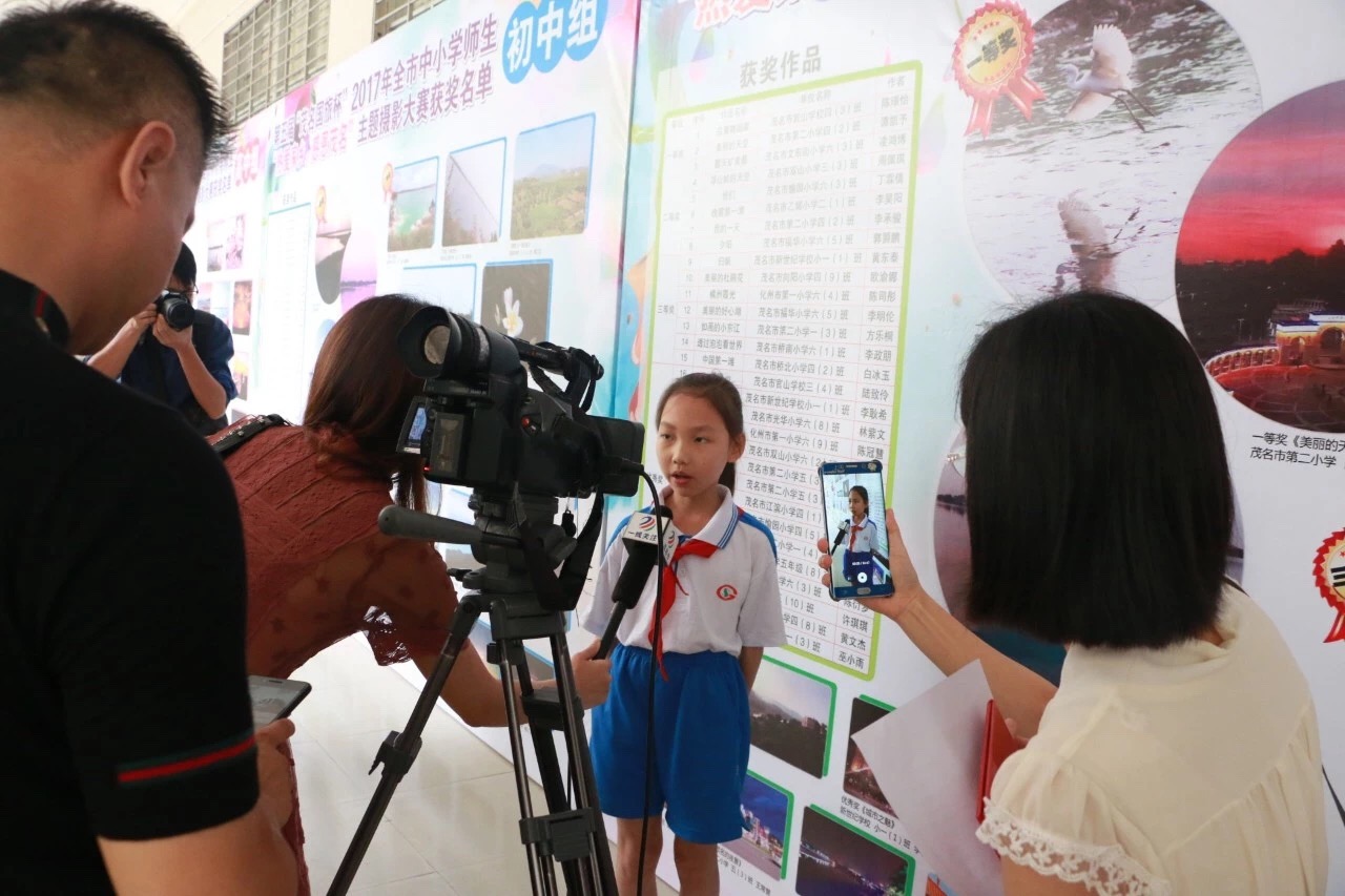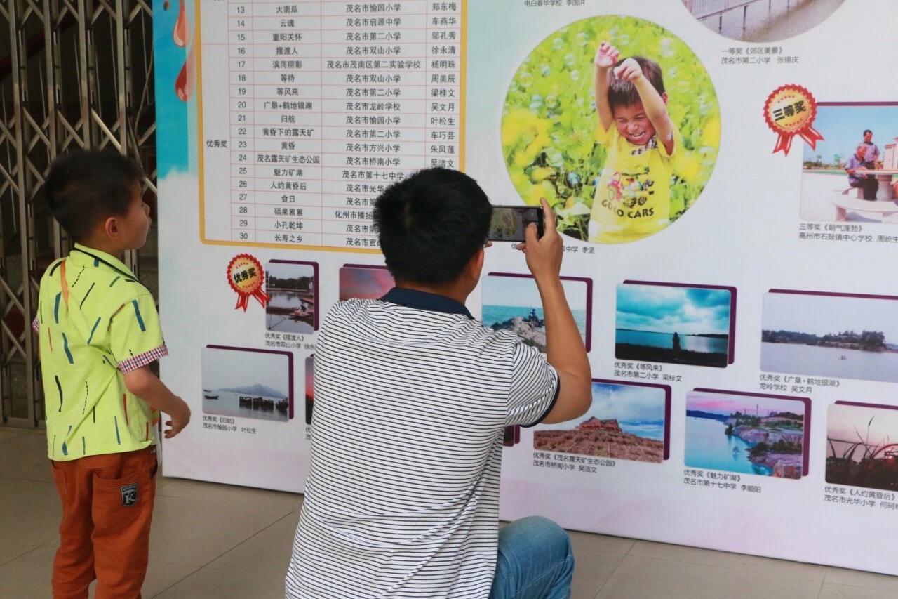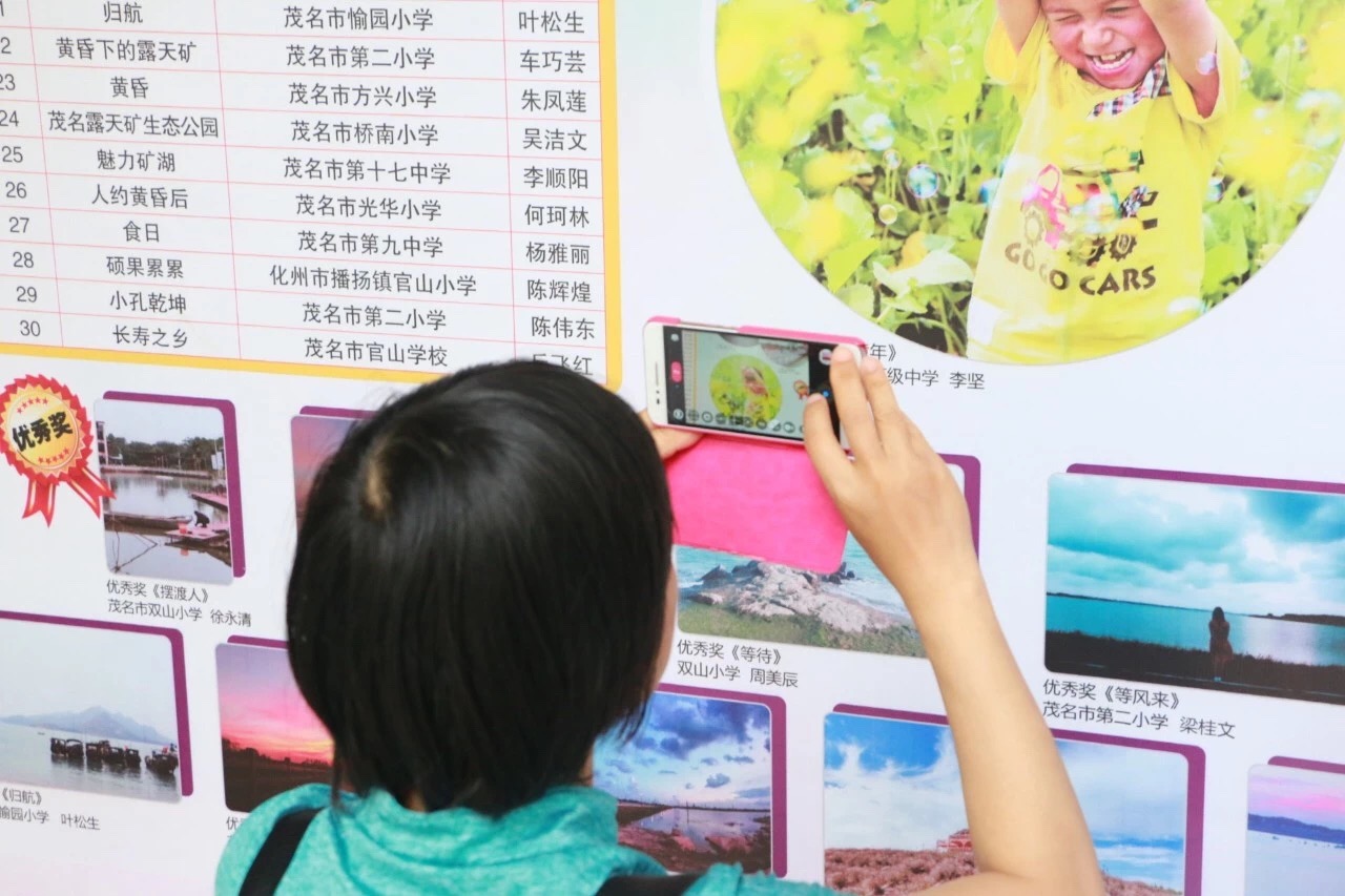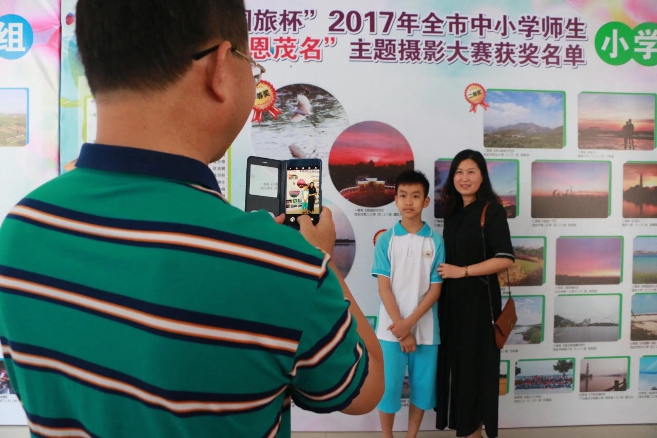 活動9點開始,但很多同學和家長們早早來到現場,在獲獎作品宣傳展板前拍照交流,不時聽到有人忍不住夸贊到,沒想到現在學生拍照都這么好看了,他(她)們眼里的茂名原來這么美,很有靈氣,作品名稱也起的真好!畫龍點睛之筆。也有很多家長忍不住為自己的孩子感到自豪和幸福,紛紛和孩子們一起在作品前拍照留念,發(fā)表朋友圈分享給親戚朋友們。