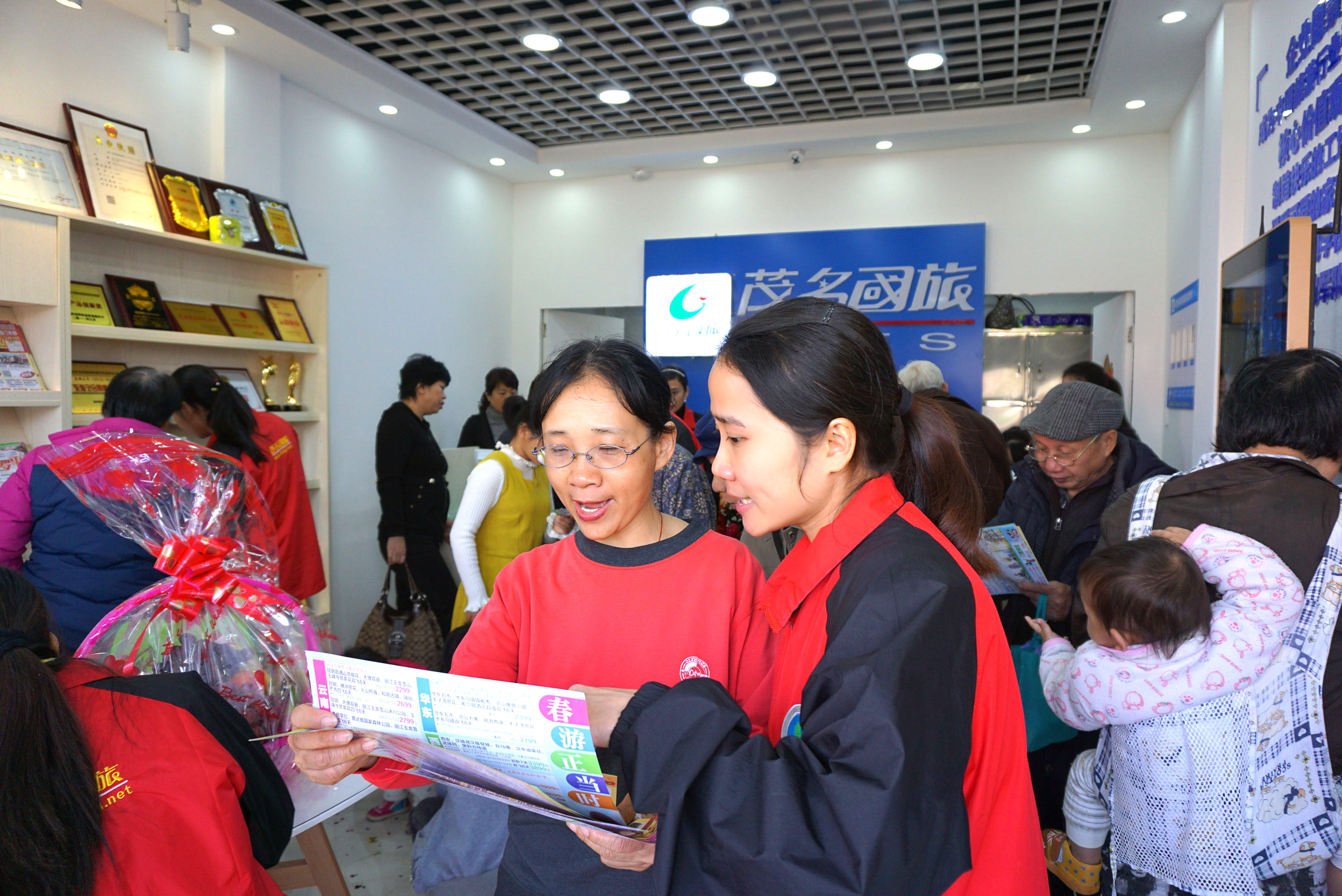 慶典現(xiàn)場(chǎng)鋪著大紅地毯,鑼鼓齊鳴,彩旗飄揚(yáng),洋溢著喜氣的氛圍。茂名國(guó)旅特舉辦了傾情大回饋、感恩大放價(jià)活動(dòng),凡前50名報(bào)名均可享受超低震撼價(jià)大優(yōu)惠,如“1元暢玩茂名森林公園”、“69元高州仙人洞一天”、“69元玉林鹿峰山一天”“79元湛江特呈島一天”、“499元柳州專列4天”等路線,前來(lái)報(bào)名搶位的市民絡(luò)繹不絕。另外,還推出“陽(yáng)朔遇龍河汽車二天299元”“華東五市雙飛六天1899元”等慶典價(jià)路線,空前未有的優(yōu)惠吸引了眾多的市民現(xiàn)場(chǎng)爭(zhēng)相報(bào)名。