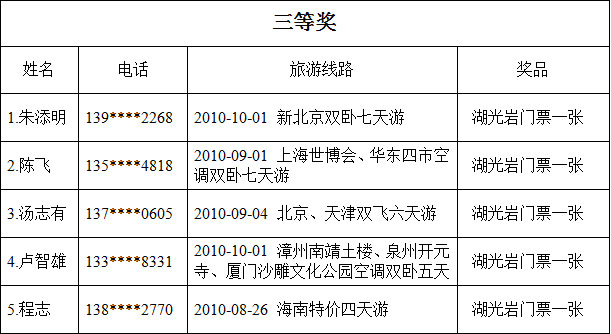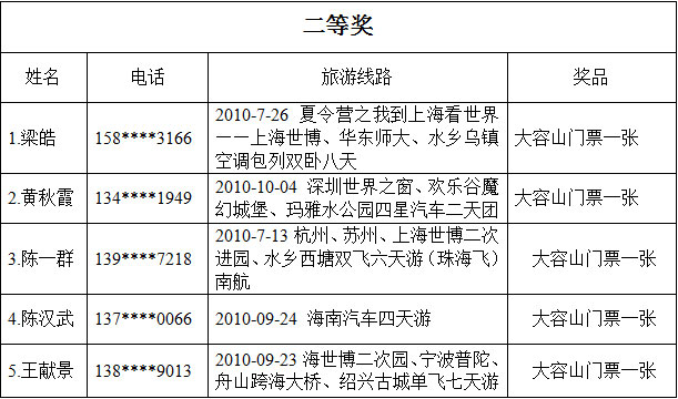 茂名國旅2010年“感動客戶年”質(zhì)量密函第二次抽獎結(jié)果公布