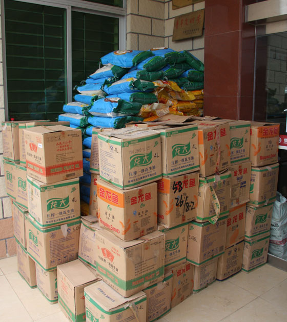 中午,茂名國旅賑災(zāi)慰問團一行又馬不停蹄地驅(qū)車前往高州大坡鎮(zhèn),到達目的地后,國旅員工顧不上吃飯,依然是流水作業(yè),把2噸大米、1噸花生油通過傳遞運送到了災(zāi)民安置點。