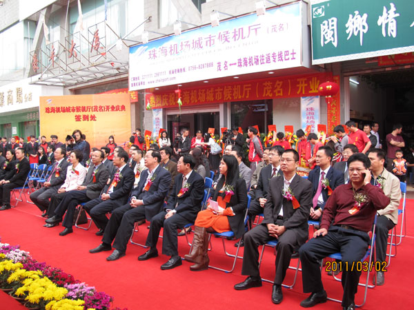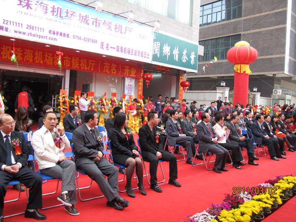 2011年3月2日,茂名國旅與珠港機(jī)場(chǎng)管理有限公司攜手合作的珠海機(jī)場(chǎng)茂名城市候機(jī)廳正式開業(yè)運(yùn)營,茂名、珠海兩地交通運(yùn)輸局和旅游局的領(lǐng)導(dǎo)參加了開業(yè)剪彩儀式。這是茂名地區(qū)首家機(jī)場(chǎng)異地城市候機(jī)廳,是珠海機(jī)場(chǎng)繼珠海、中山、江門市區(qū)之后開設(shè)的第8家城市候機(jī)廳,為茂名市提供購票、異地值機(jī)、行李直掛、班車接送等“一站式”服務(wù)。