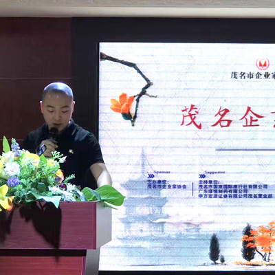 茂名市企業(yè)家協(xié)會(huì)執(zhí)行會(huì)長、茂名國旅董事長費(fèi)民龍致辭