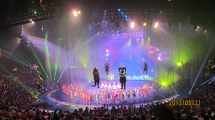 晚上,長(zhǎng)隆景區(qū)安排我們觀看了詼諧、驚險(xiǎn)、高難度,精彩絕倫的長(zhǎng)隆國(guó)際大馬戲,長(zhǎng)隆國(guó)際大馬戲擁有全球首創(chuàng)實(shí)景式馬戲舞臺(tái),數(shù)千萬(wàn)巨資打造極致奢華的尖端舞美科技,和數(shù)億巨資建造的全世界最大的馬戲表演場(chǎng),能容納近8000名觀眾同時(shí)觀看。