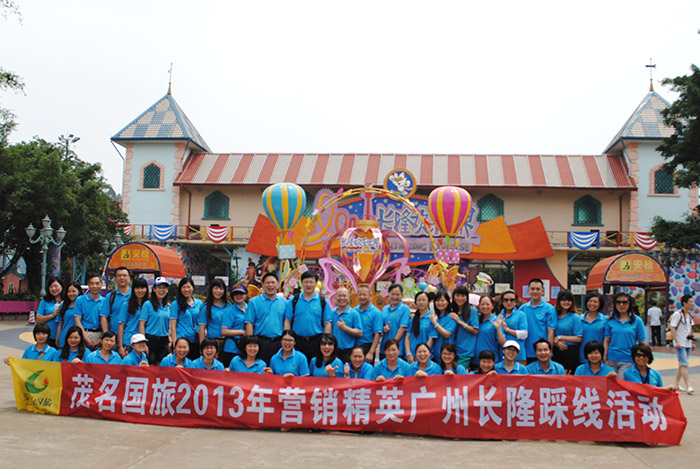 2013年5月11、12日,公司營(yíng)銷精英一行50多人赴廣州長(zhǎng)隆進(jìn)行了考察踩線活動(dòng)。公司非常重視此次踩線活動(dòng),總經(jīng)理吳卡達(dá)、副總經(jīng)理陳國(guó)斌、劉穎等公司領(lǐng)導(dǎo)親自帶隊(duì)同行。長(zhǎng)隆景區(qū)對(duì)我們此次踩線活動(dòng)非常重視,不但全免了五大主題公園的門(mén)票,更安排多名工作人員全程陪同講解,讓大家對(duì)長(zhǎng)隆五大主題公園有全面的了解。