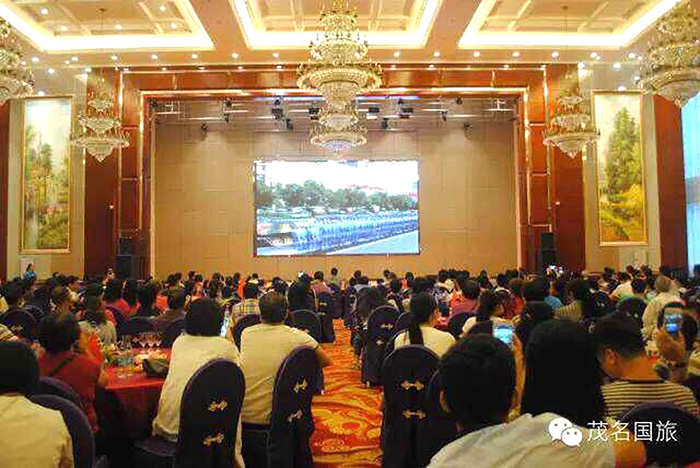 由于路途太遠,很多市民去不了北京現(xiàn)場觀看閱兵儀式。為了讓廣大市民能親身感受閱兵儀式的震撼氣氛,激發(fā)大家的愛國熱情,9月3日,茂名國旅獨家包下陽江維納斯皇家五星溫泉大酒店會議中心,讓市民通過高清超大屏幕觀看閱兵儀式。共有400多名市民成功報名搶位參加了這一活動。