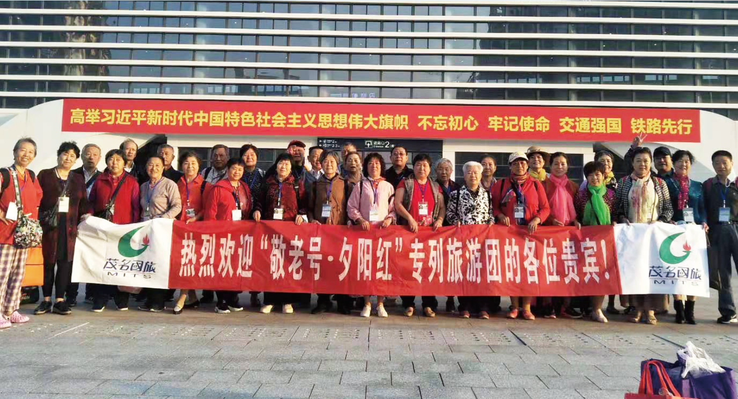 11月5日,“敬老號(hào)·夕陽(yáng)紅”首趟旅游專列從安徽開進(jìn)我市。清晨,列車緩緩駛進(jìn)茂名站,茂名國(guó)旅工作人員和導(dǎo)游們?cè)缫训却鄷r(shí)。一走下列車,470多名游客興奮地站在茂名火車站前留下了他們旅途的第一個(gè)印記。