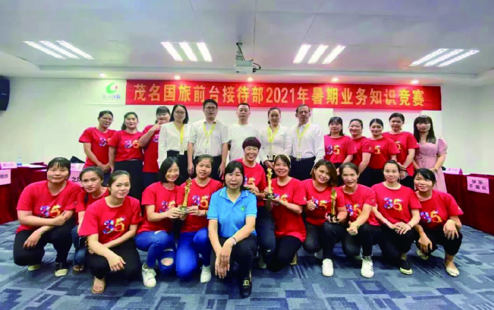 暑期旺季來臨,為了使廣大員工進(jìn)一步提高業(yè)務(wù)水平,增強(qiáng)綜合素質(zhì),豐富知識(shí)結(jié)構(gòu),同時(shí)加強(qiáng)協(xié)作能力,展示職業(yè)風(fēng)采,營造良好學(xué)習(xí)氛圍,打造一流團(tuán)隊(duì)。2021年7月16日,茂名國旅特舉辦前臺(tái)業(yè)務(wù)技能大比拼,以優(yōu)質(zhì)服務(wù)接受游客檢閱,知識(shí)競賽活動(dòng)得到了前臺(tái)部門的踴躍參與,最終選出了9組(18位)前臺(tái)代表參賽。