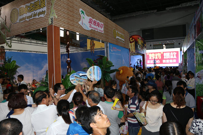 二、規(guī)模盛大。此次旅博會(huì)吸引了來自廣東、廣西、重慶、香港、臺(tái)灣以及泰國等國內(nèi)外共60多個(gè)商家參展,其中包括珠海橫琴長隆、麗星郵輪、世紀(jì)游輪、泰國加維國際旅運(yùn)等,參展陣容強(qiáng)大,展會(huì)分室內(nèi)展區(qū)和室外展區(qū),所有展位全部爆滿,參展的除了常規(guī)的旅行社、景區(qū)之外,還有酒店、土特產(chǎn)等旅游企業(yè)參加。本次旅博會(huì)得到了我市著名景區(qū)及酒店的大力支持,浪漫海岸國際旅游度假區(qū)、御水古溫泉休閑養(yǎng)生度假區(qū)、廣東茂名森林公園、茂名放雞島海洋度假公園、茂名濱海公園、高州市仙人洞景區(qū)、茂名國際大酒店等景區(qū)酒店悉數(shù)參展。據(jù)悉,本次旅博會(huì)入場觀眾接近10萬人次,為期兩天的展會(huì)每個(gè)時(shí)段都吸引了巨大人流逛展,是我市旅游行業(yè)目前為止規(guī)模最大的展會(huì)。