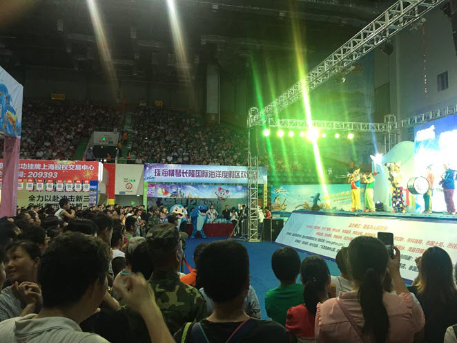 珠海長隆的卡通動(dòng)物與觀眾互動(dòng)。