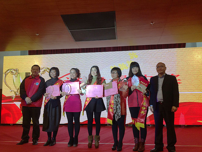 總經(jīng)理助理?xiàng)盍?、王洵為進(jìn)步最快獎(jiǎng)獲得者劉麗萍、袁翠紅、陳金鳳(林梅芬代領(lǐng))、楊梅、劉顏娟頒獎(jiǎng)