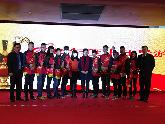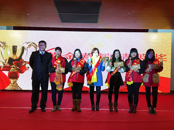 副總經(jīng)理劉穎、總經(jīng)理助理?xiàng)盍粸榻艹鰻I銷精英獎(jiǎng)獲得者林曉、祝桂芳、毛玉章、楊玉榮、劉顏娟、林梅芬、黃清波、陳俊、羅華梅、溫曉玲、吳偉琴頒獎(jiǎng)