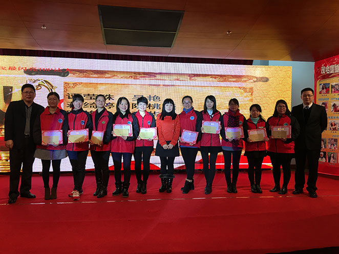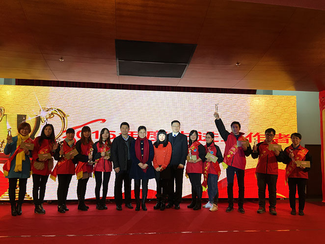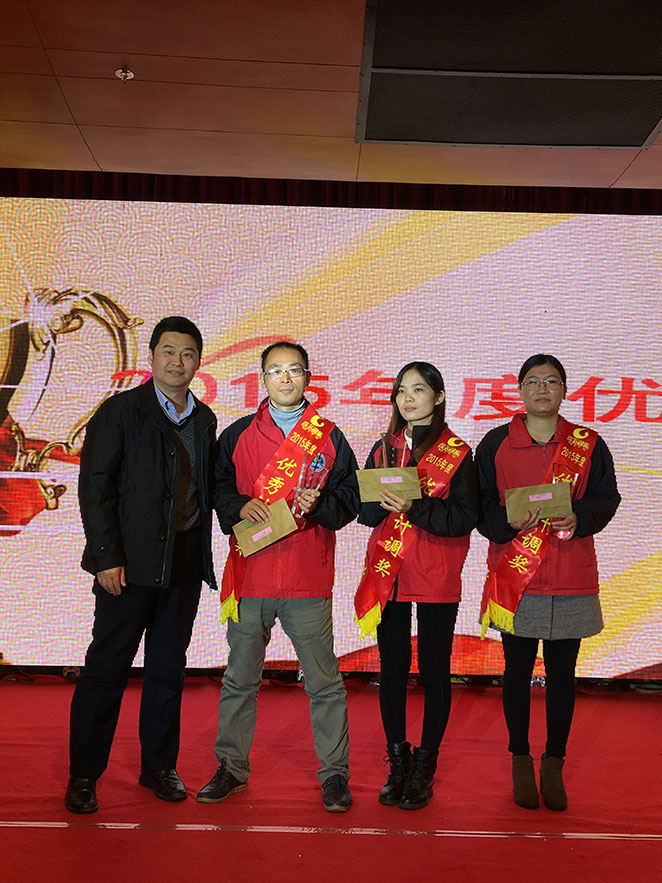 梁紅健局長、費(fèi)民龍董事長、吳卡達(dá)總經(jīng)理、張宗躍科長為2015年度先進(jìn)工作者獲得者柯慧容、劉麗紅、李佳、黃章清、謝春艷、包漢麗、戴玉增、蔣先武、張可偉、黃秋梅頒獎(jiǎng)