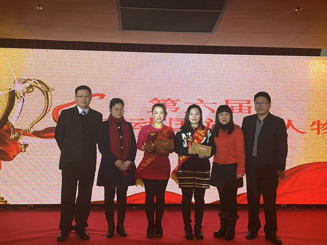 董事長費(fèi)民龍、總經(jīng)理吳卡達(dá)為翡翠營銷精英獎(jiǎng)獲得者袁翠紅頒獎(jiǎng)