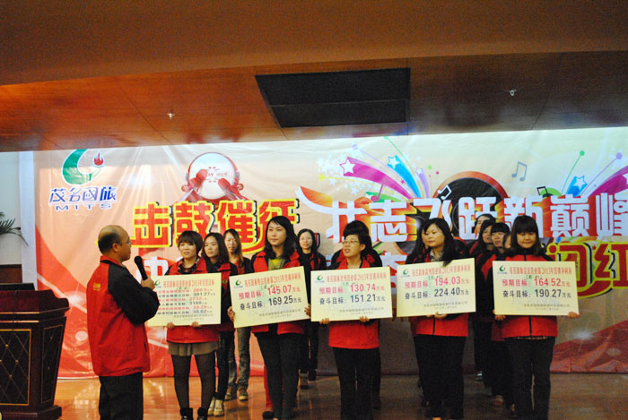 最后,各部門負(fù)責(zé)人逐一上臺(tái)領(lǐng)取了2013年目標(biāo)任務(wù)牌并誓師表決心。在全體員工的熱烈掌聲中,茂名國旅2013年開門紅誓師大會(huì)圓滿結(jié)束。
