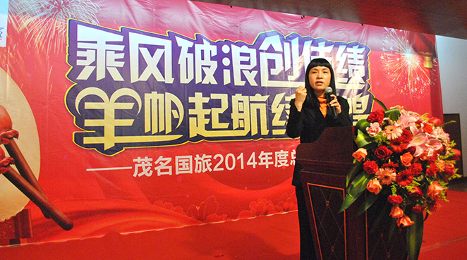 吳總在年度工作總結(jié)中說(shuō),2014年是國(guó)旅發(fā)展史上具有里程碑意義的一年,這一年是茂名國(guó)旅建社30周年,經(jīng)過(guò)30年的發(fā)展,茂名國(guó)旅從一個(gè)姍姍學(xué)步的嬰兒發(fā)展為一個(gè)朝氣蓬勃,奮發(fā)有為的青年,組接團(tuán)業(yè)務(wù)穩(wěn)居粵西第一。這一年是茂名國(guó)旅成功轉(zhuǎn)型的一年,從2013年團(tuán)體旅游大幅下跌,業(yè)務(wù)急劇下降的彷徨無(wú)所適從,到2014年產(chǎn)品緊貼散客市場(chǎng),業(yè)務(wù)止跌回升,茂名國(guó)旅在激烈的市場(chǎng)競(jìng)爭(zhēng)中重新找到了方向。