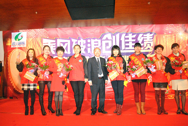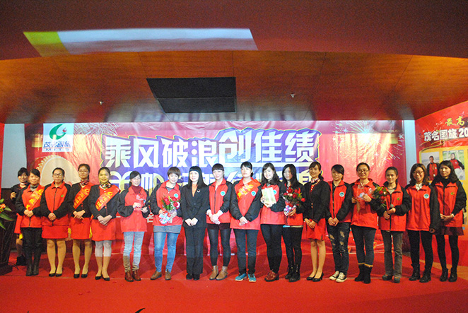 副總劉穎,總助楊柳椿為優(yōu)秀營(yíng)銷(xiāo)精英獎(jiǎng)楊梅、毛玉章、楊玉榮、林梅芬、陳燕、祝桂芳、劉麗紅頒獎(jiǎng)