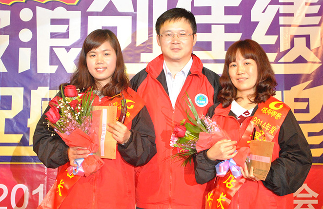 副總經(jīng)理劉穎為2014年度優(yōu)秀計(jì)調(diào)獎(jiǎng)黃清霞、張小梨頒獎(jiǎng)