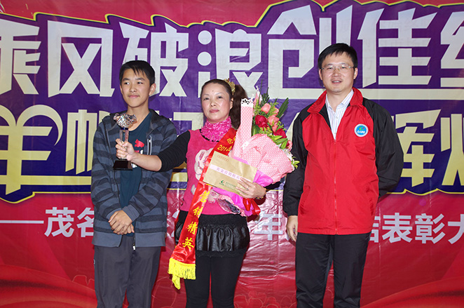 總經(jīng)理吳卡達(dá)為個(gè)人銷(xiāo)售業(yè)績(jī)第一名的黃金營(yíng)銷(xiāo)精英獎(jiǎng)袁翠紅頒獎(jiǎng)袁翠紅的兒子與媽媽分享豐收的喜悅