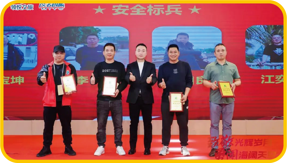 茂名國(guó)旅執(zhí)行董事李泓希為旅游車(chē)隊(duì)劉寶坤、李海、陳日良、江奕華頒發(fā)“安全標(biāo)兵”獎(jiǎng)