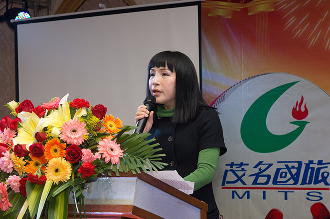 費(fèi)民龍董事長在員工大會上講話。