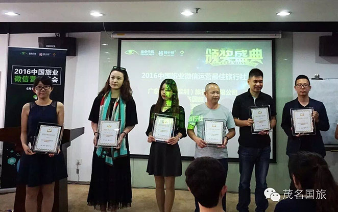 大會公布了2016中國旅業(yè)微信運營風云榜名單,并舉行了隆重的頒獎儀式。茂名國旅訂閱號作為長期位居“中國旅業(yè)微信排行榜”旅行社板塊前5名的微信公眾號品牌,被大會授予“2016中國旅業(yè)微信運營最佳旅行社”榮譽稱號。尤為可喜可賀是,茂名國旅是三、四線城市中唯一獲得此榮譽的旅行社。