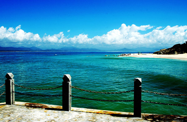 由于蜈支洲島四面環(huán)海的特殊地理優(yōu)勢,上島的人,首先想做的第一件事都會是游泳潛水。這個島嶼沒有受到人為的污染和破壞,所以海水出奇地清澈透明,能見度達(dá)到18米,潛入神奇誘人的海底,在五彩斑斕的珊瑚叢中,你可以看到蝦兒魚兒穿梭不停,游進(jìn)游出,美麗異常。一種細(xì)小如針的魚成群結(jié)隊地在海里“飛”來“飛”去,其速度之快叫一般的魚望塵莫及。有幾種顏色極為艷麗的魚羞澀地躲在珊瑚叢中,它們在叢林里慢條斯理、旁若無人地游動著,其悠閑至極的模樣叫現(xiàn)代忙碌的都市人羨慕不已。初次潛水在讓你感覺新鮮、好奇、刺激和神秘的同時,也會夾雜少許恐懼和緊張,但只要你有較好的體能并掌握一定的知識,一切不成問題。