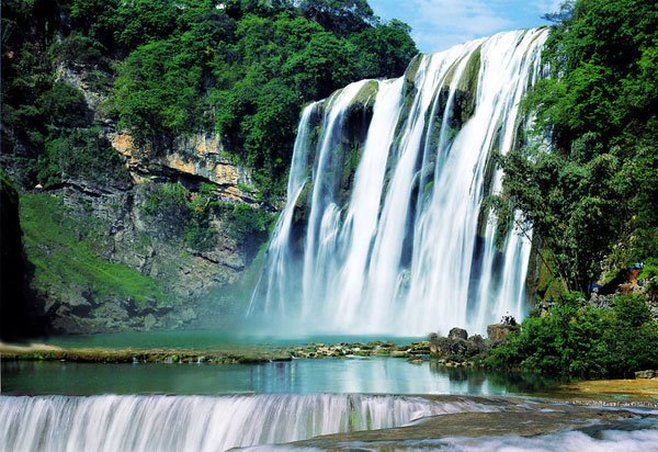 黃果樹大瀑布是黃果樹瀑布群中最為壯觀的瀑布,是世界上唯一可以從上、下、前、后、左、右六個(gè)方位觀賞的瀑布,也是世界上有水簾洞自然貫通且能從洞內(nèi)外聽、觀、摸的瀑布。明代偉大的旅行家徐霞客考察大瀑布贊嘆道:“搗珠崩玉,飛沫反涌,如煙霧騰空,勢(shì)甚雄偉;所謂‘珠簾鉤不卷,匹練掛遙峰’,俱不足以擬其壯也,高峻數(shù)倍者有之,而從無此闊而大者”。