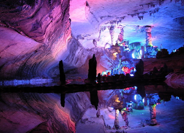 其余五巖也各有特色,閬風(fēng)巖東南北三面臨水,溶洞特多,南面的無底洞洞口直徑約2米,蜿蜒而下,深不可測。玉屏巖林木叢生,有三仙閣,閣外蹬道有兩凹穴,訛傳為神仙腳印。有一大石半懸?guī)r上,名“半巖”,用石在不同地方敲擊,可聽到各異的音響。天柱巖一柱擎天,恰如其名,巖上多紅豆。蟾蜍巖高70米,滿布石溝、石筍,其中一塊巨石狀如蟾蜍舉目望雨。仙掌巖巖頂略平,面積約100平方米,北面有幾根豎立的石筍,形如托掌,東望群巖如天仙七女臨湖照影。