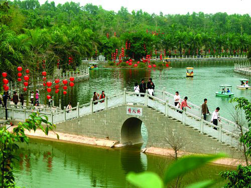 趣園是廣東茂名森林公園的園中園,占地777畝。園中有園,各具特色。百果園引進有國內外大量名、優(yōu)、珍、奇、稀、新水果品種,是觀賞、推廣熱帶亞熱帶果樹栽培技術和科普教育的基地;千個園收集有竹種近200個,是我國南方重要的竹子種源基地和竹子基因庫;蘇鐵園收集有“活化石”之稱的稀有蘇鐵品種40多種,是目前粵西地區(qū)品種最多、面積最大的專類園;植物八卦迷宮規(guī)模 宏大南粵僅有;大型的林業(yè)科普館省內罕有,收藏近百種珍稀動物實物標本,展出有大量的科普資料和圖片;猛獸園有老虎、黑熊、金錢豹等大批珍稀動物;動物長廊有機靈乖巧的阿拉伯狒狒、憨態(tài)可人的熊猴、艷麗奪目的金剛鸚鵡、角大咀粗的雙角犀鳥、伸手敏捷的白頰長臂猿、獅尾猴等趣稚動物。鳥語林鶯歌雀躍、百鳥翔集;兒童樂園游樂項目豐富多彩、新奇刺激;趣湖蕩舟,浪漫溫馨;驚險喂鱷,溫情燒烤,臨苑品茗,登亭賞景……無不令人陶醉,心曠神怡。同時,趣園內還設有奇瓜園、沙漠植物園、陰生植物園、盆景園、水禽園、瑞龜池和世界名人長廊、生態(tài)廣場、趣橋世界、樂苑等多個景區(qū)、景點。