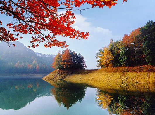 湖中1078個島嶼,姿態(tài)各異,風姿綽約。春游湖上,布滿山花的島嶼,是一個個天真爛漫的村姑;夏日游湖,在這碧波中逐浪暢游;秋山紅葉,使人想起“霜葉紅于二月花”的景象;雪滿湖山,松挺山崖,則又是一幅王維筆下的詩畫圖。千島湖,這個純凈、年輕、美麗、豐饒的湖,“千島湖山水天下秀”,優(yōu)美的自然風光和良好的生態(tài)環(huán)境,使它成為世界旅游的熱點。