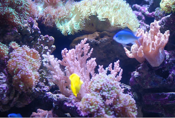 水體寬22米,長38米,水深達(dá)7米,分為4層,觀眾可由通道環(huán)繞參觀。該館按珊瑚礁布局,分深湖和瀉湖兩部分:深湖依據(jù)堡礁設(shè)計,瀉湖參照緣礁摹造,兩湖海水相通。館內(nèi)放養(yǎng)了太平洋島嶼及南中國海魚類5000多條,約400多種,從體長不到2厘米的鹽雀鯛到身長3米的豹紋鯊,還有海鰻、神仙魚、石斑魚等各種珊瑚礁魚類。該館還設(shè)有“珊瑚和珊瑚礁”展覽,介紹有關(guān)珊瑚礁的形成。