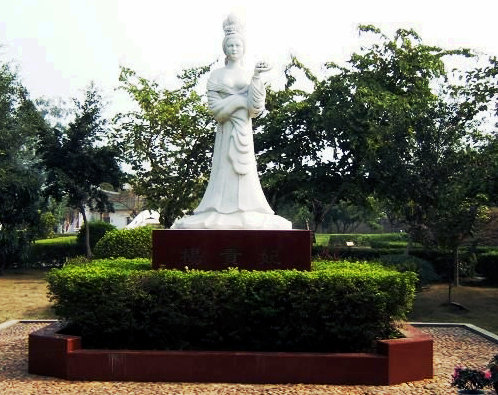 楊貴妃原名楊玉環(huán),容縣十里鄉(xiāng)楊外村人。唐朝天寶年間〔公元743-755年〕,四門助教許子真撰寫的《容州普寧縣楊妃碑記》記載:“楊妃,容州楊外沖人也……”此碑文在《欽定全唐文》四百三十卷,完整地記錄了楊貴妃為容州普寧縣〔容縣曾稱普寧縣〕楊沖(今十里鄉(xiāng)楊外村)人。在容縣十里鄉(xiāng)楊外村,至今保留有楊妃山、楊妃廟、楊妃井等遺跡。1998年,在真武閣東面貴妃梳妝樓遺址修建了貴妃園。該園占地15畝,是根據(jù)唐代楊貴妃一生的傳奇故事而建造的仿唐古建筑。各組建筑物內(nèi)采用仿真硅膠人物像,重現(xiàn)唐代貴妃出世、玉環(huán)入宮、貴妃醉酒、貴妃出浴、貴妃起舞、妃子笑等景點,讓游人觀賞楊貴妃一生的傳奇故事,是令人回味無窮的歷史人物游覽園。